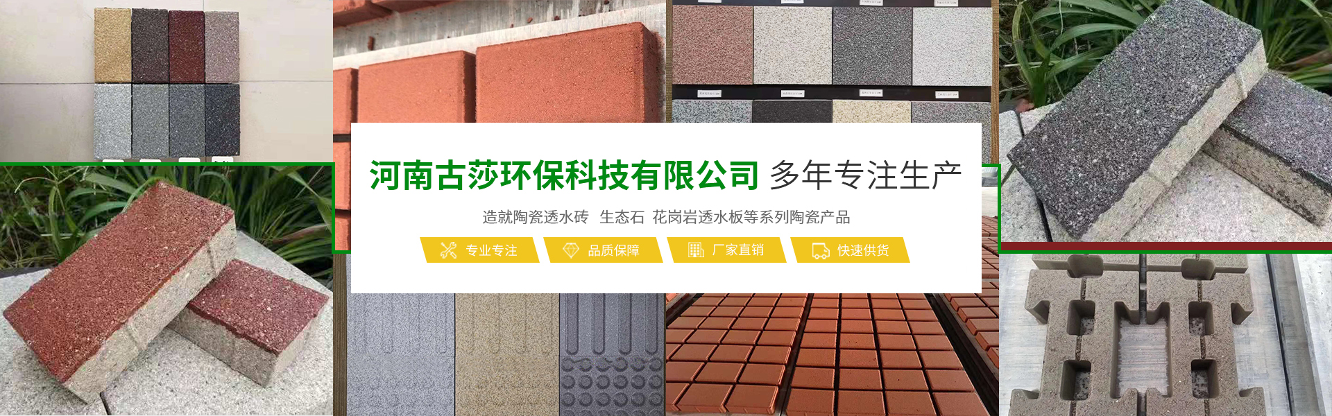 河南古莎環??萍加邢薰究傋溆诮煌屑~城市鄭州,是一家具備研發、生產、銷售能力為一體的綜合性現代化陶瓷企業。本公司專業生產經營生態陶瓷透水磚、生態鋪石、PC仿石材透水磚、PC仿石材景墻磚、普通透水磚、燒結磚等系列產品,完善的研發團隊,完善的生產流水線設備,打造完善的陶瓷企業。古莎環保科技現代化陶瓷企業是美化城市,改善生活環境質量的生態環保產品,可廣泛應用于公共建筑廣場、城市道路、公園、藝術景觀、廊道、房地產、別墅住宅小區、地鐵口、車站、高速公路服務區等。古莎環??萍荚谠刑沾善髽I基礎上,另拓展園林綠化、市政施工、瀝青包工包料施工、公路維修等業務板塊,專業培訓了一些園林綠化、市政施工技術人員,并有多年的施工養護經驗以及建筑工程經驗。保證市政工程施工質量以及園林綠化后期養護規范化、專業化。古莎環??萍妓裱钠髽I與品牌發展思路,是奠定在品質與產品應用之上。環保理念由我們共同倡導,理性思考,以推進步,感性溝通,以共建優越。古莎環??萍寂c大家真誠合作,攜手共進,為助力海綿城市建設,建筑高品質的綠色城市生活貢獻一份力量!